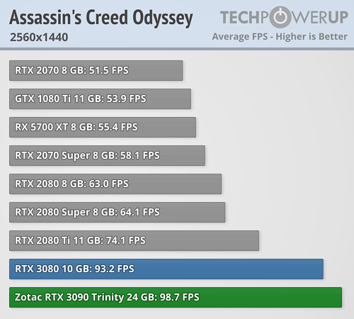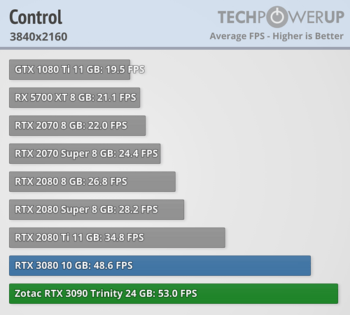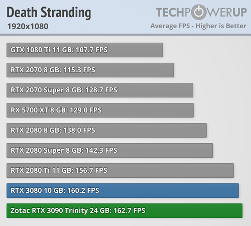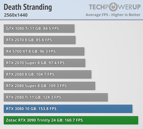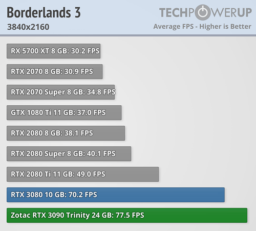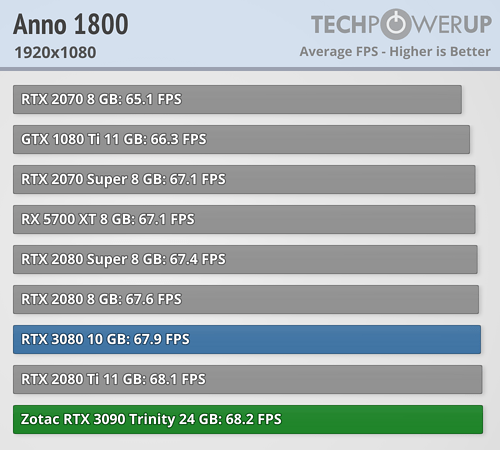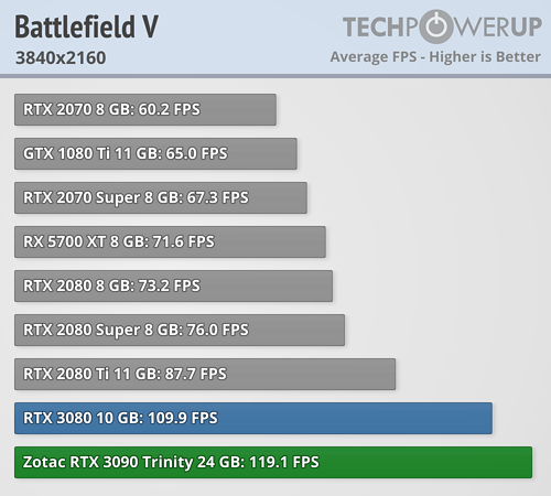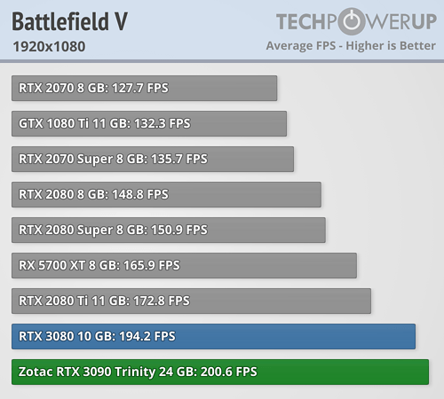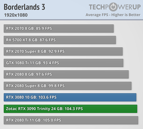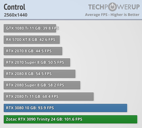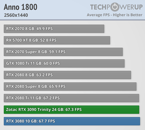 En esta ocasión se puede ver claramente que en lugar de una BFGPU (big fucking GPU) como la llama el director ejecutivo de NVIDIA, es una BFCP (big fucking caro pisapapeles, o más en cristiano un pisapaeles jodidamente caro). Al menos si se miran los resultados arrojados a FHD y QHD, que apenas aporta mejora de rendimiento a pesar de pasar de costar 699 dólares a 1499 dólares, demostrando nuevamente que los procesadores actuales están limitando bastante en bastantes juegos a las RTX 3080 y RTX 3090. La media de mejora de TechPowerUp es en torno a un 4/5 % a FHD, de un 6/10 % a QHD —ahora explico por qué doy dos valores, que no un rango—, y de un 9/16 % más a UHD. ¿1499 dólares por un 9 % más de rendimiento? No parece una buena decisión de compra.